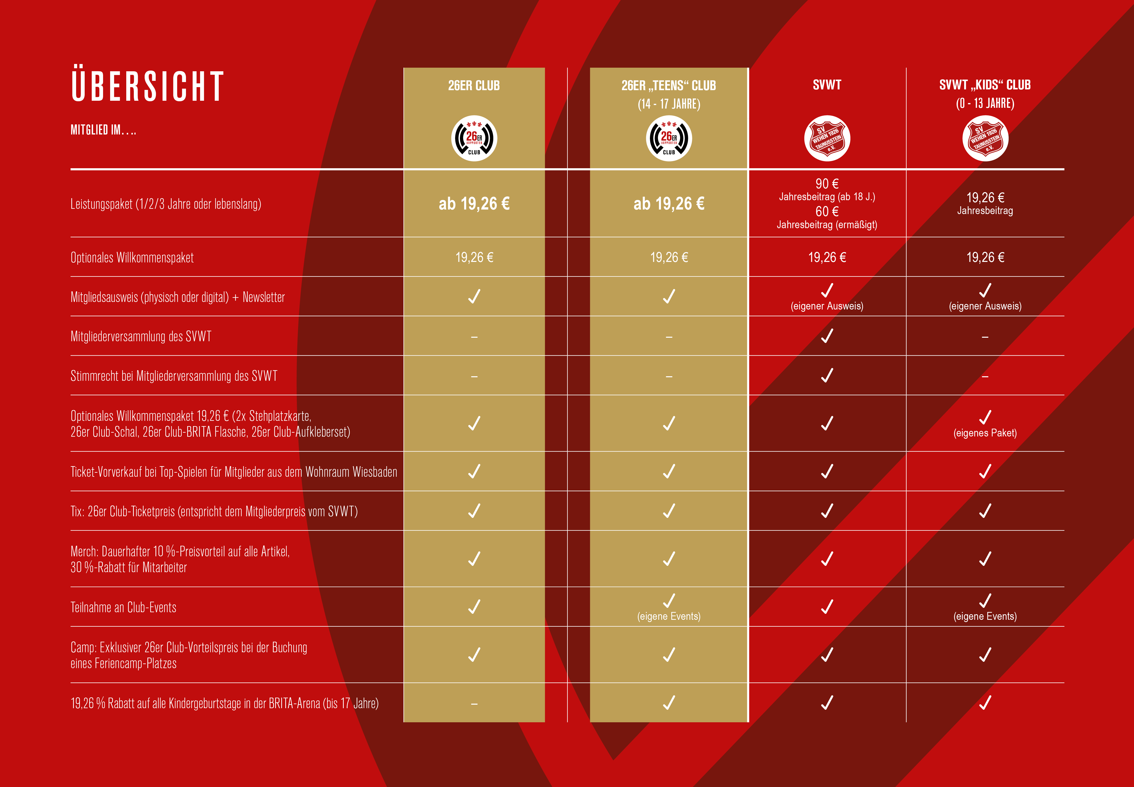 Im W vereint und im 26er Club miteinander verbunden! Beim SV Wehen Wiesbaden ist der 26er Club die neue sportliche Heimat innerhalb der rot-schwarzen Familie mit leistungsstarken und attraktiven Angeboten für alle Fans und Freunde des SVWW.