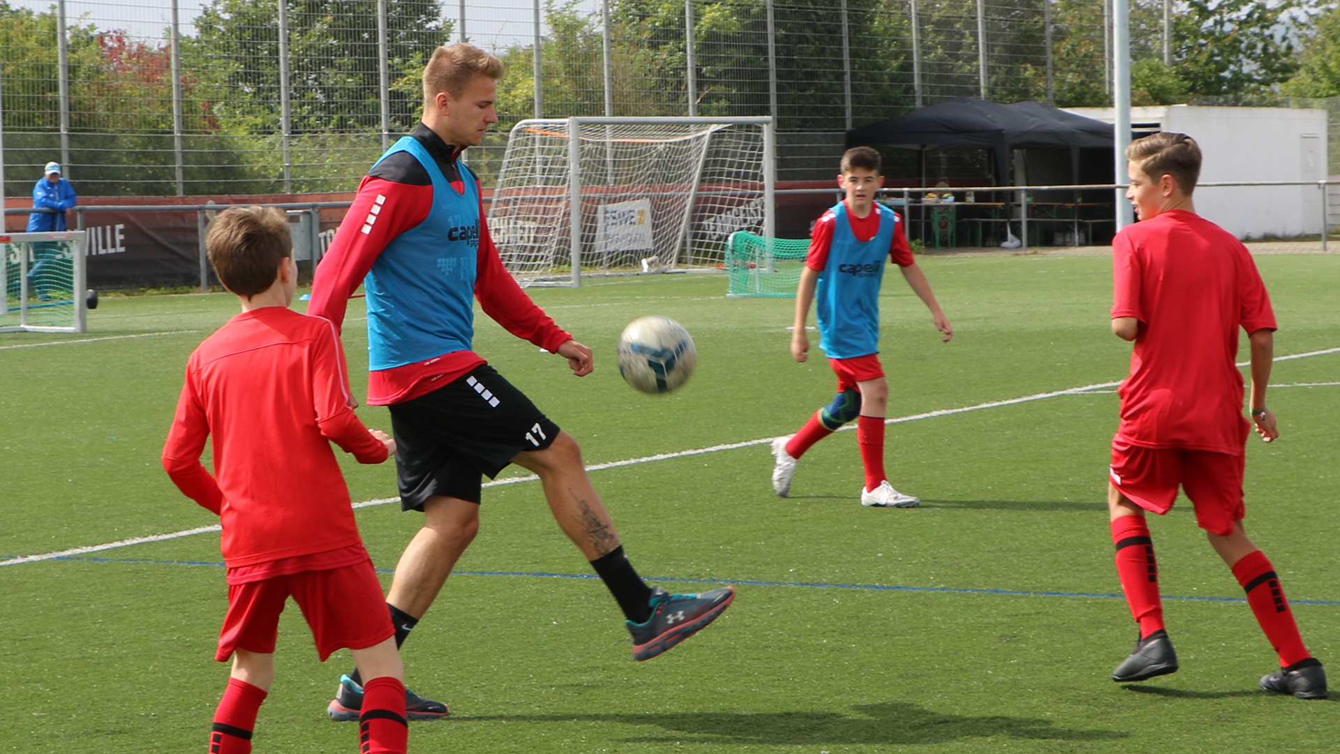 So schaute zunächst Lucas Brumme für eine Fragerunde mit Autogrammstunde auf dem Halberg vorbei, bevor Florian Carstens sehr zur Freude der Kinder bei einer Trainingseinheit mitspielte.