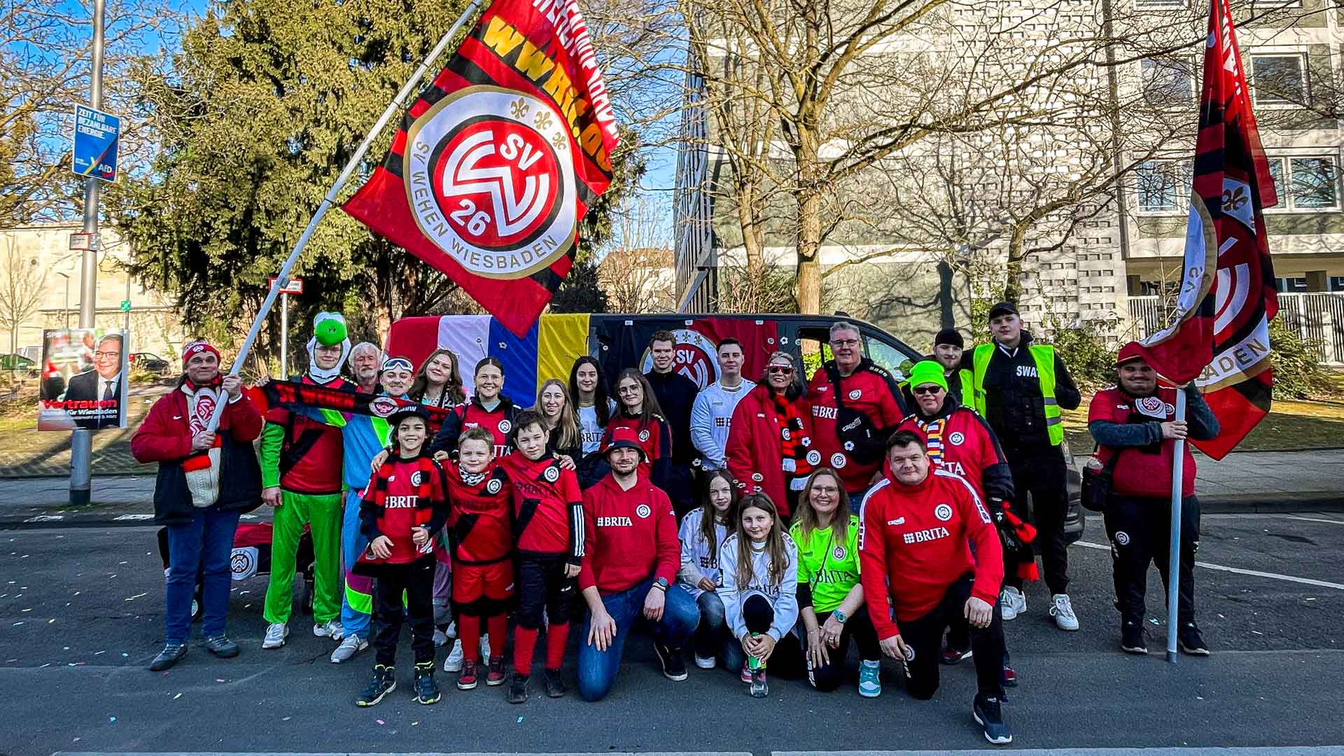 Wiesbaden helau! Beim 76. Fastnachtsumzug in der hessischen Landeshauptstadt war der SV Wehen Wiesbaden am vergangenen Sonntag mit einem rund 30-köpfigen Tross aus Mitarbeiterinnen und Mitarbeitern, Mitgliedern des 26er Clubs und Fans vertreten.