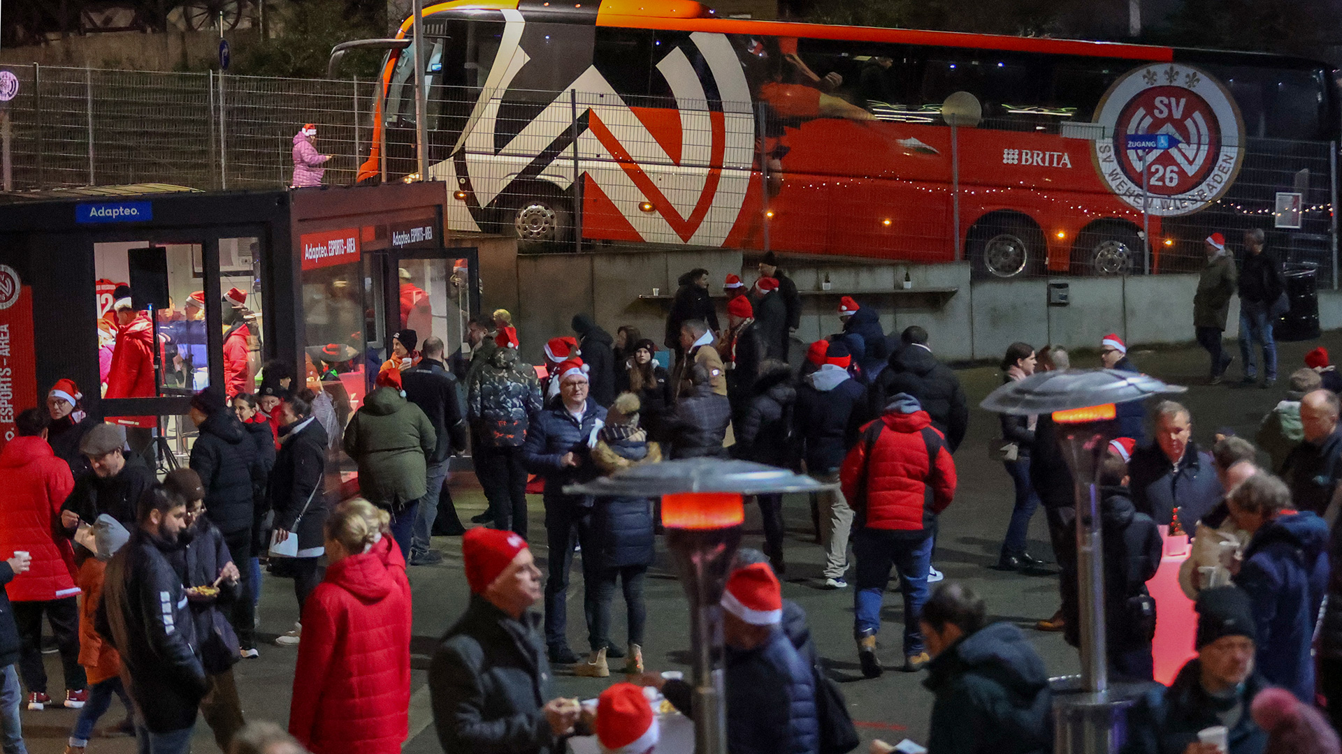 Eine gelungene Premiere feierte der erste Weihnachtsmarkt des SV Wehen Wiesbaden, der am Mittwochabend exklusiv für 26er Club-Mitglieder nebst Begleitung auf dem weihnachtlich geschmückten Festplatz der BRITA Arena stattfand. Insgesamt mehr als 200 Gäste besuchten das Event und erlebten bei weihnachtlicher Musik einen gemütlichen Abend. Unter die Besucher mischten sich mit Gino Fechner, Kianz Froese, Thijmen Goppel, John Iredale und Hyunju Lee zudem auch fünf Profis des SVWW.