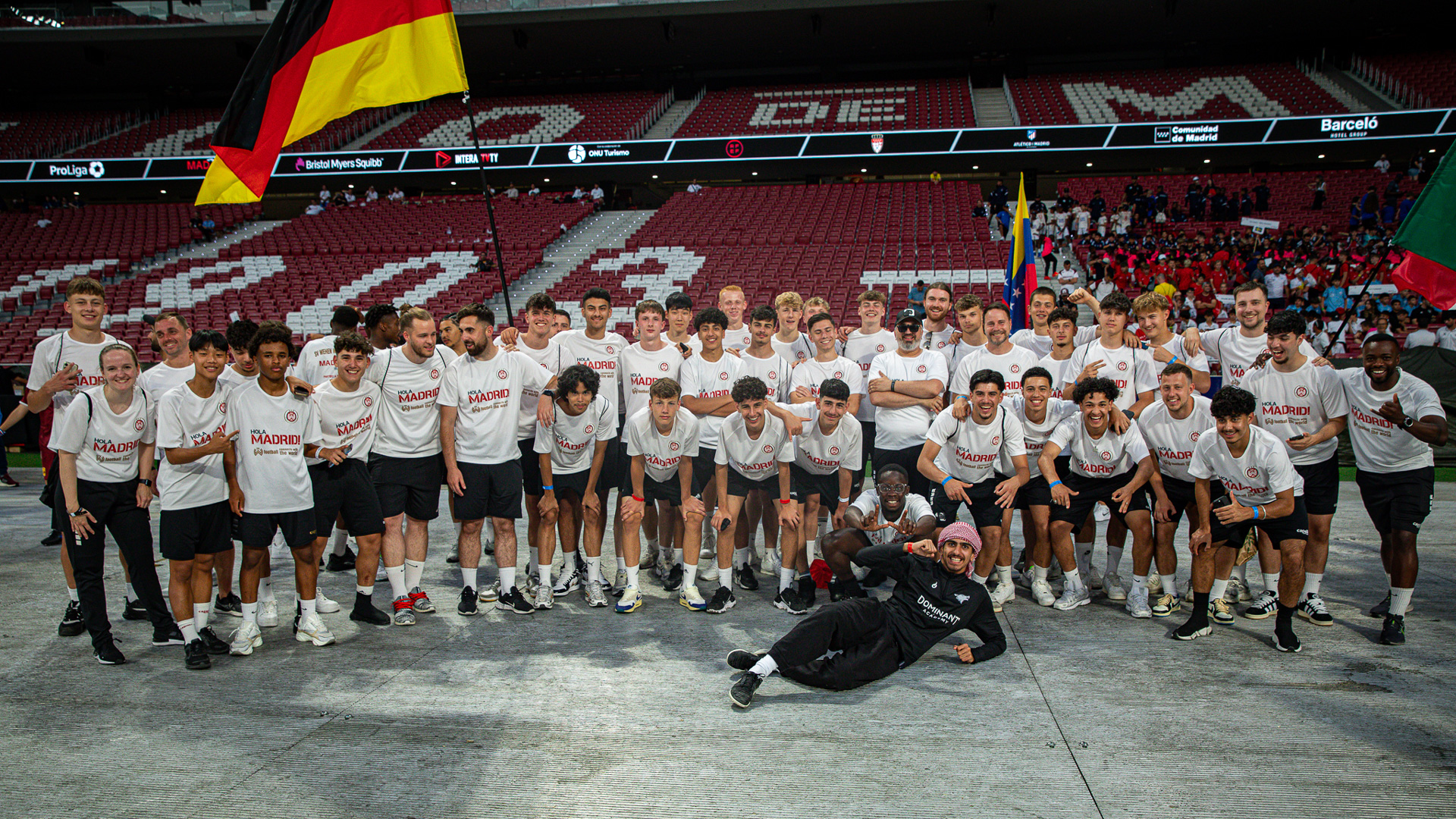 Am Abend stand mit der „Grande Fiesta“ des MadCups im Stadion von Atlético Madrid, dem Wanda Metropolitano, allerdings noch ein weiteres Highlight außerhalb des Sportlichen auf dem Programm. Insgesamt mehr als 700 Teams aus der ganzen Welt kamen so im Atlético-Stadion zusammen, um sich selbst und den Fußball zu feiern. Immer wieder kamen auch die rot-schwarzen Nachwuchsspieler mit den Kickern anderer Teams in Kontakt, machten zusammen Fotos und unterhielten sich in einem Mix aus verschiedenen Sprachen – so zum Beispiel mit der Dominant Academy aus der Vereinigten Arabischen Emirate oder den venezolanischen Jungs von Talentos Vinotintos. Eingeleitet wurde das Programm der Veranstaltung durch eine Ansprache des Präsidenten von Atlético Madrid Enrique Cerezo und das Regionalfernsehen übertrug das Event live. Am Ende durfte dann jedes Team sogar ins Innere des Stadions einlaufen und nicht wenige der Jungs hielten den sicherlich unvergesslichen Moment vor mehr als 20.000 Zuschauern mit ihren eigenen Handykameras fest.