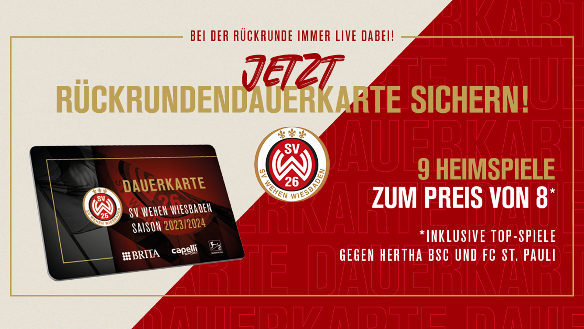 In der Dauerkarte inbegriffen sind alle neun SVWW-Heimspiele der Saison 23/24 nach der Winterpause: