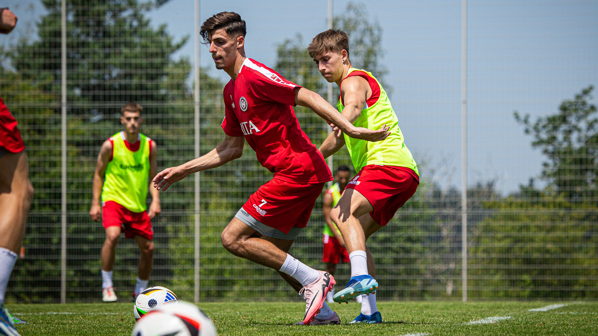 Bei praller Sonne verlangte das Trainerteam den Jungs einiges ab. Dabei lag der Fokus in der rund 90-minütigen Einheit nach kurzer Erwärmung vor allem auf dem Konditionstraining.