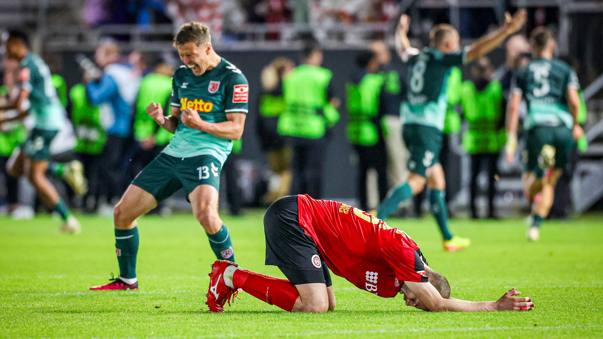 Der SV Wehen Wiesbaden verliert das Relegations-Rückspiel gegen den SSV Jahn Regensburg mit 1:2 (0:1) und steigt damit nach dem 2:2 im Hinspiel wieder in die 3. Liga ab. Am Ende reichte der Anschlusstreffer von Ivan Prtajin neun Minuten vor dem Ende nicht mehr, um den Abstieg nach einem Jahr Zweitliga-Zugehörigkeit noch zu verhindern.