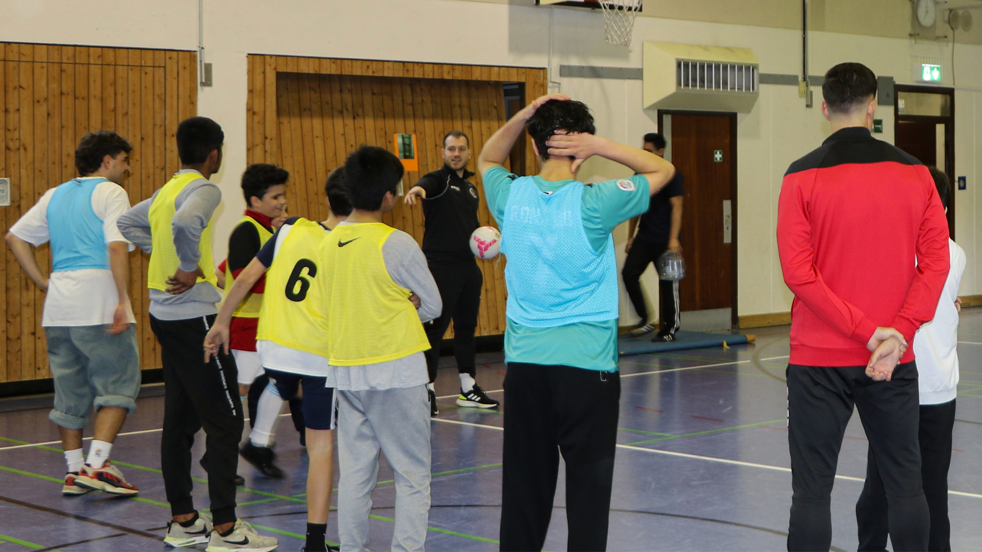 Dabei leitete Marcel Poruba, seines Zeichens U15-Trainer der Rot-Schwarzen, die rund 90-minütige lockere Trainingseinheit in der Turnhalle der Werner-von-Siemens-Schule und coachte die Kids durch verschiede Übungen inklusive Abschlussturnier sowie einem Elfmeterschießen.