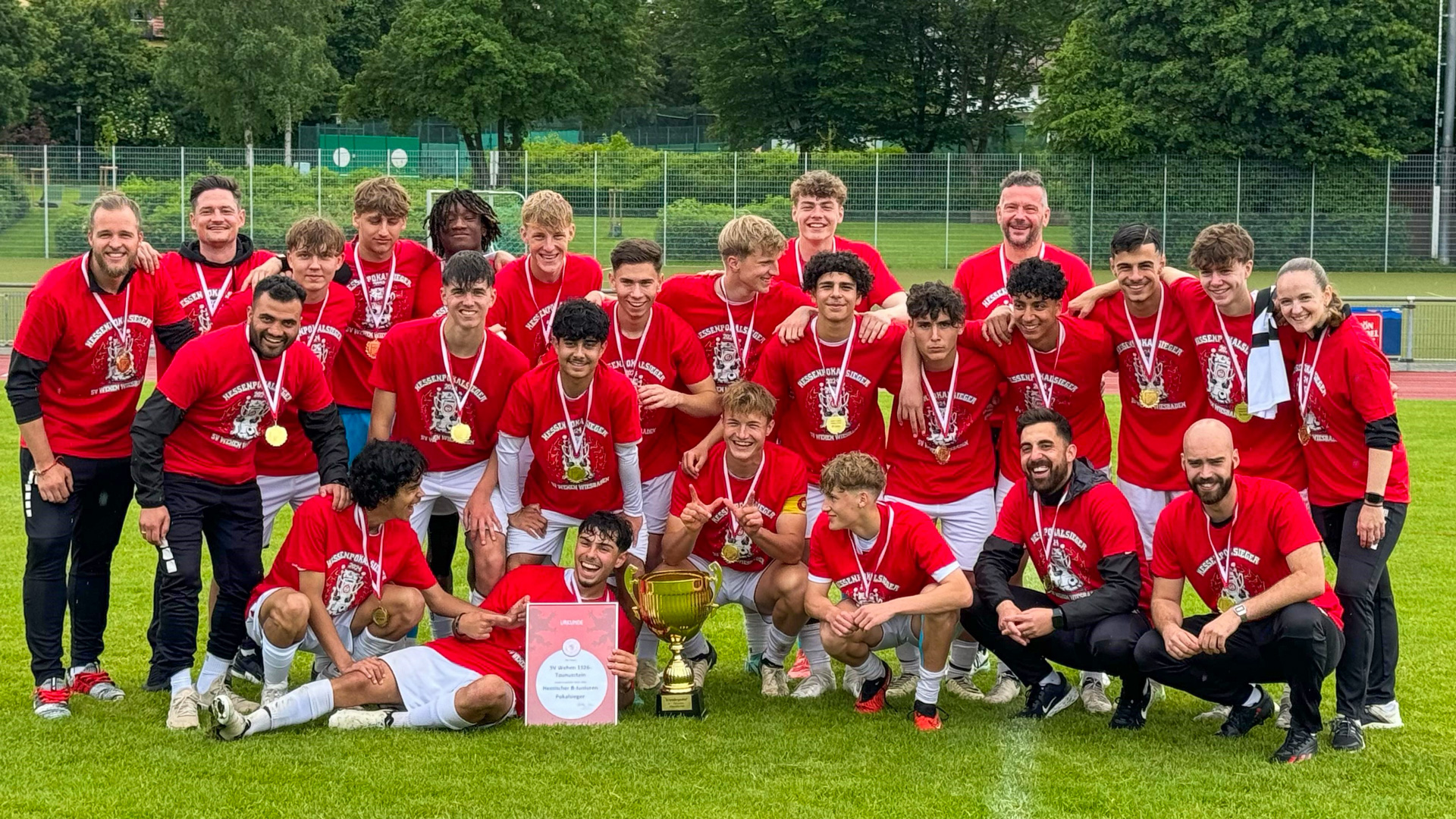 SVWW holt den Pokal! Die U17 des SV Wehen Wiesbaden gewinnt das Finale des Hessenpokals gegen den Meister der Verbandsliga Nord KSV Baunatal mit 3:0 (2:0) und krönt sich damit zum Hessen-Pokalsieger.