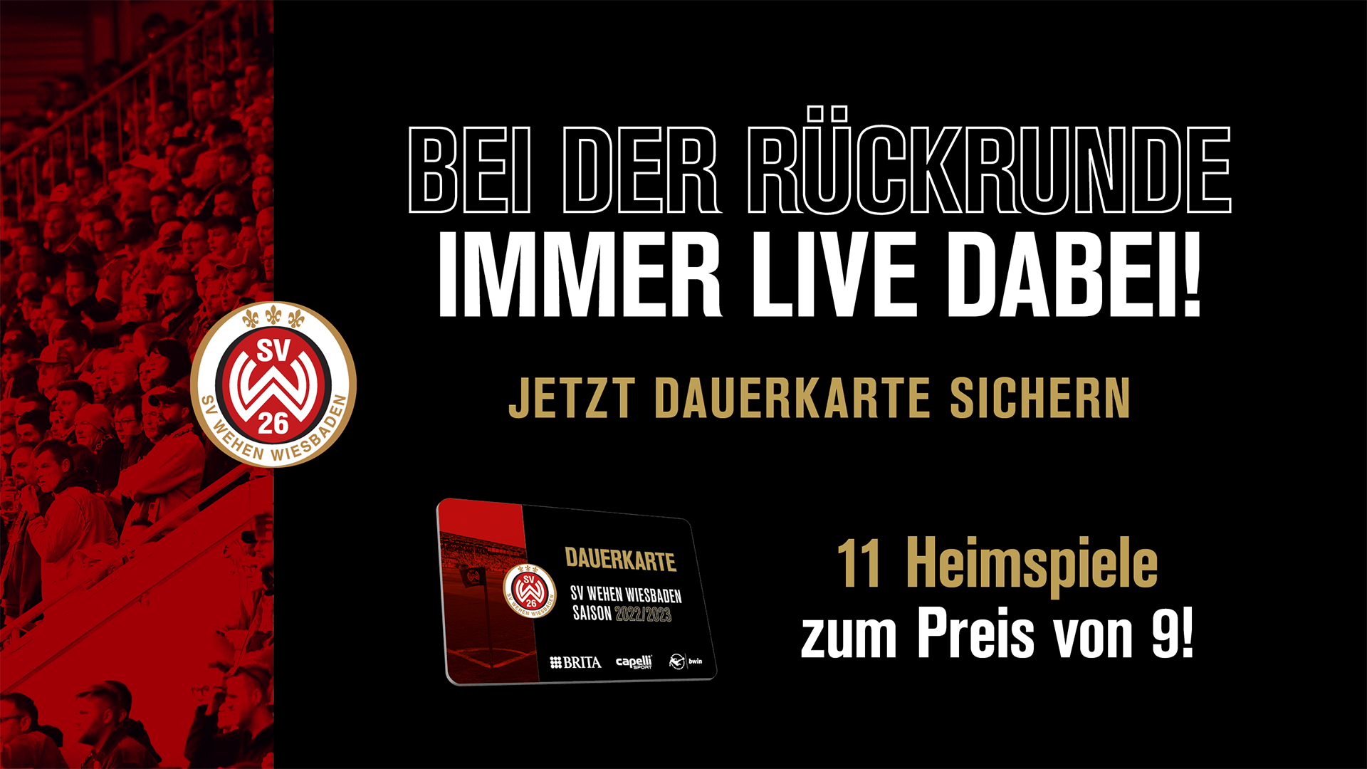 Der Verkauf der Rückrunden-Dauerkarte für die Heimspiele des SV Wehen Wiesbaden in der BRITA-Arena ist gestartet. Dabei können sich die SVWW-Fans wieder über viele Vorteile freuen – vor allem über ihr Vorkaufsrecht für die Heimspiele gegen München, Mannheim und Saarbrücken.