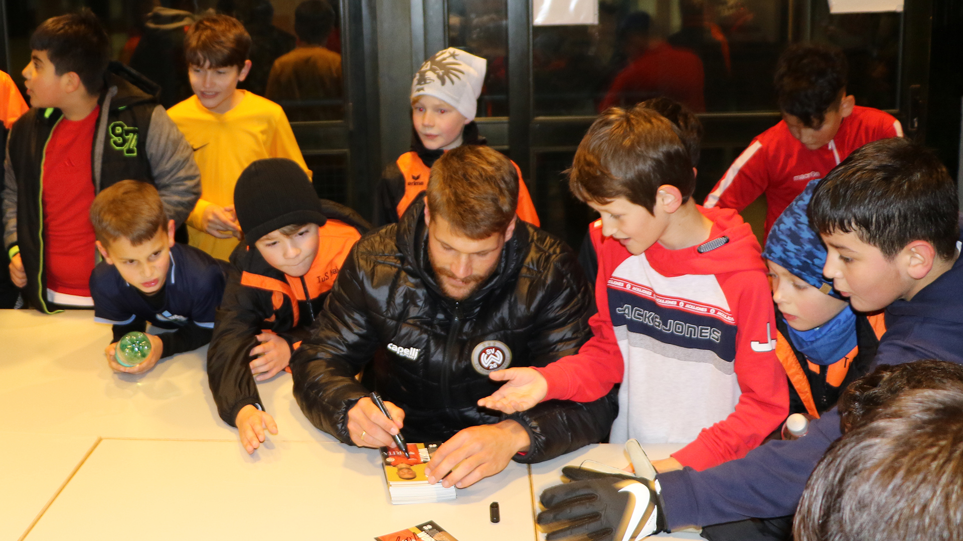 Zum krönenden Abschluss des Besuchs stellte sich der SVWW-Profi den Fragen der Nachwuchskicker. In der kleinen Fragerunde war außerdem genügend Zeit für Autogrammwünsche und Selfies. Und auch für Johannes Wurtz gab es noch ein kleines Dankeschön: Ein signiertes Trikot aller teilnehmenden Spieler.